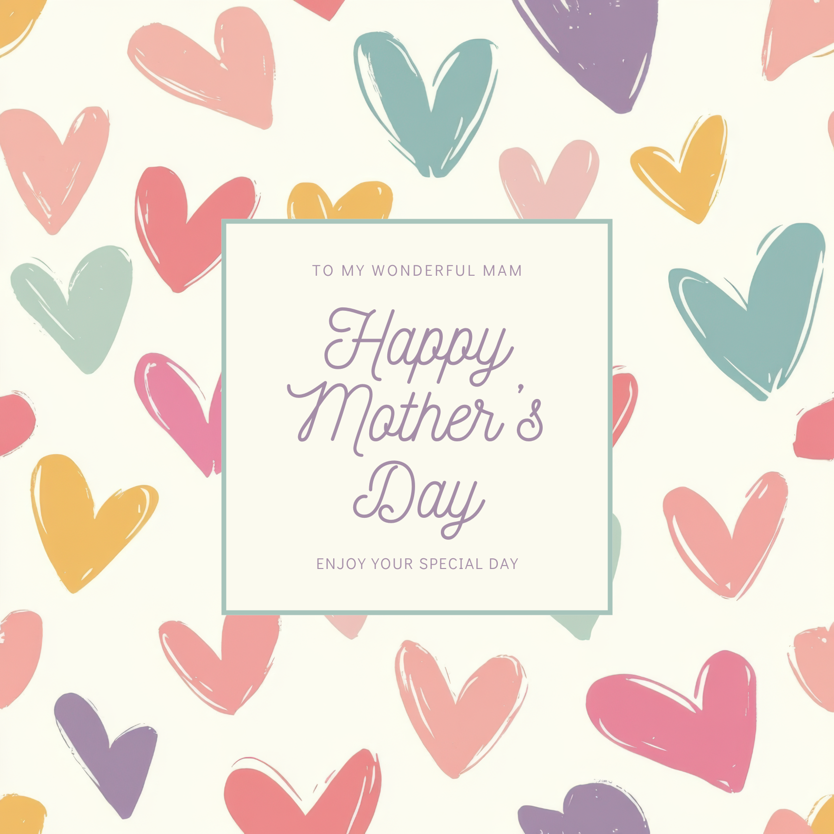 Mother's Day card with pastel heart design. To my wonderful Mam, Happy Mother's Day, enjoy your special day.